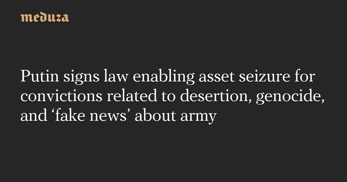 Putin signs law enabling asset seizure for convictions related to desertion, genocide, and ‘fake news’ about army