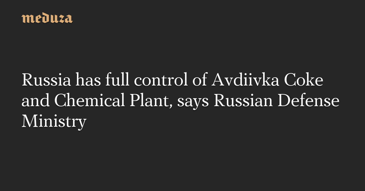 Russia has full control of Avdiivka Coke and Chemical Plant, says Russian Defense Ministry