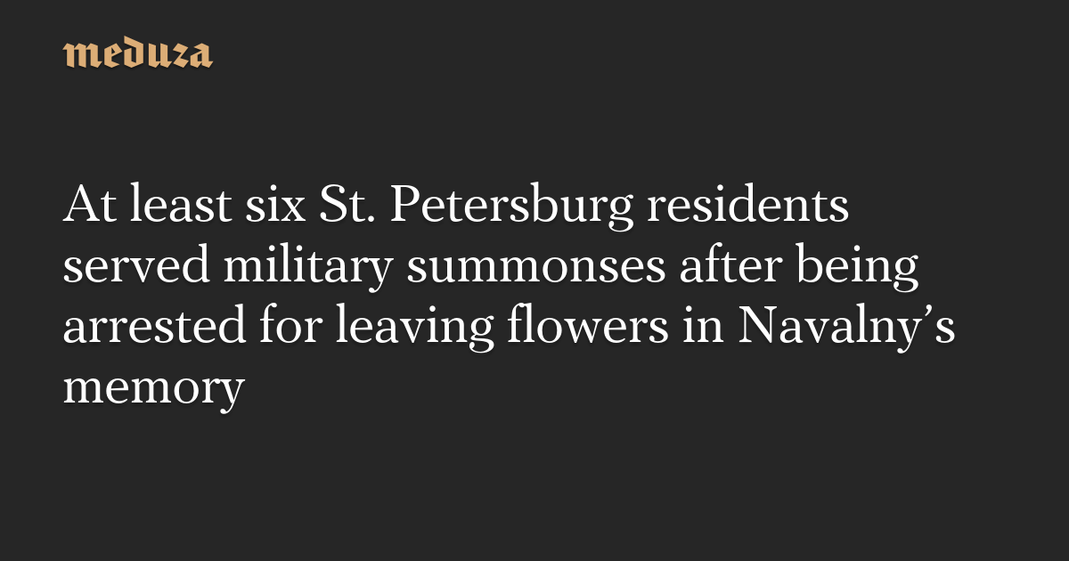At least six St. Petersburg residents served military summonses after being arrested for leaving flowers in Navalny’s memory