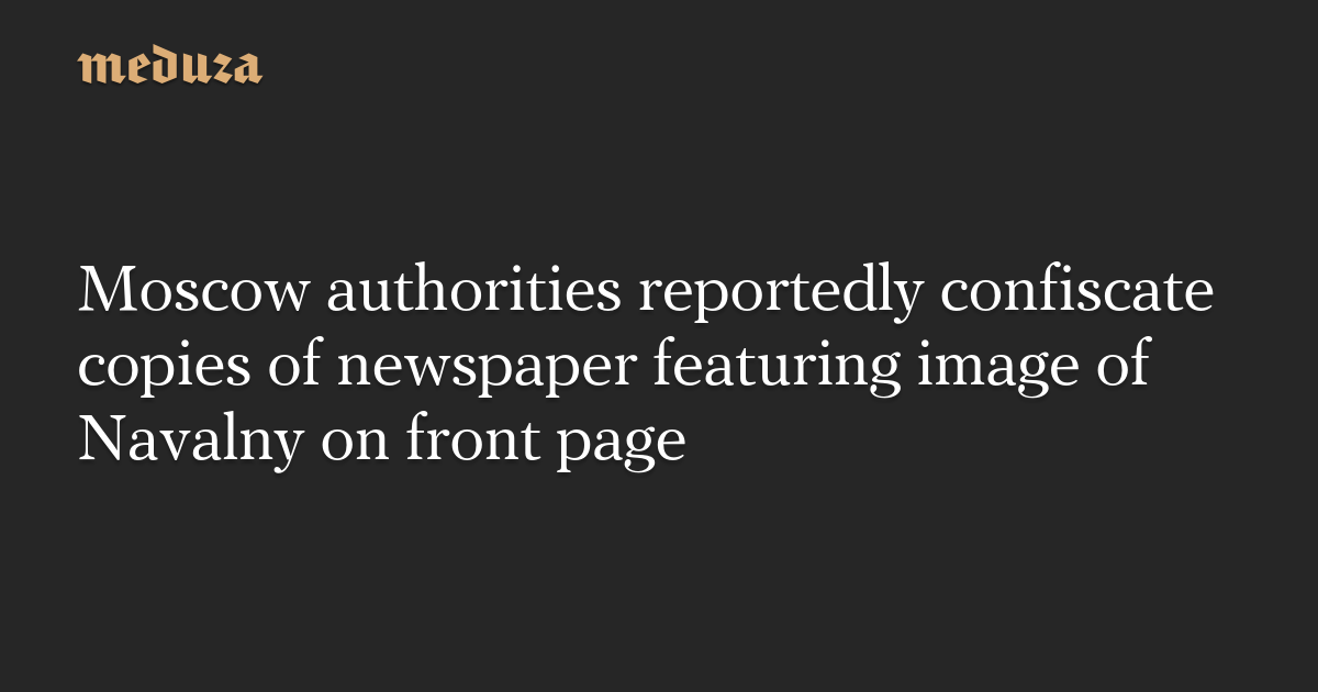 The Moscow authorities confiscated copies of an issue of the newspaper Sobesednik which featured an image of Alexey Navalny on the front page “either everywhere or nearly everywhere,” report news outlets Ostorozhno Novosti and SotaVision, citing Sobesednik journalist Elena Milchanovska.