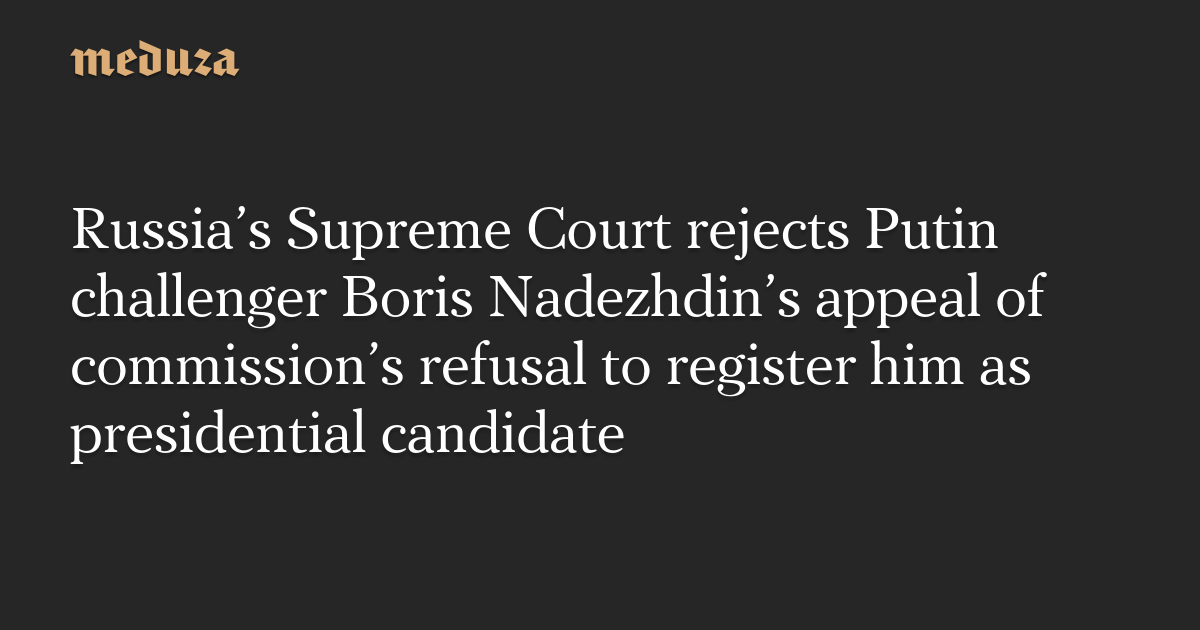 Russia’s Supreme Court rejects Putin challenger Boris Nadezhdin’s appeal of commission’s refusal to register him as presidential candidate