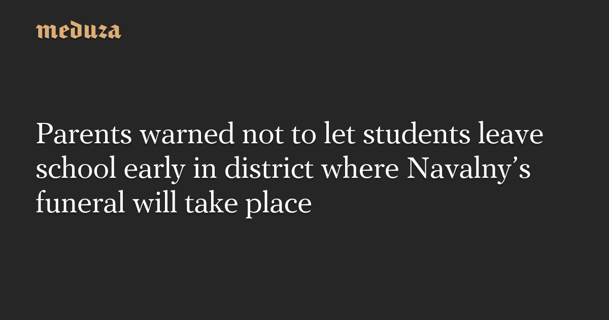 Parents of schoolchildren in Moscow’s Maryino district, where Alexey Navalny is set to be buried on Friday, have been warned that their kids should remain at school until 3:15 p.m. “to ensure their safety,” TV Rain has reported. Navalny’s funeral is scheduled for 2:00 p.m.