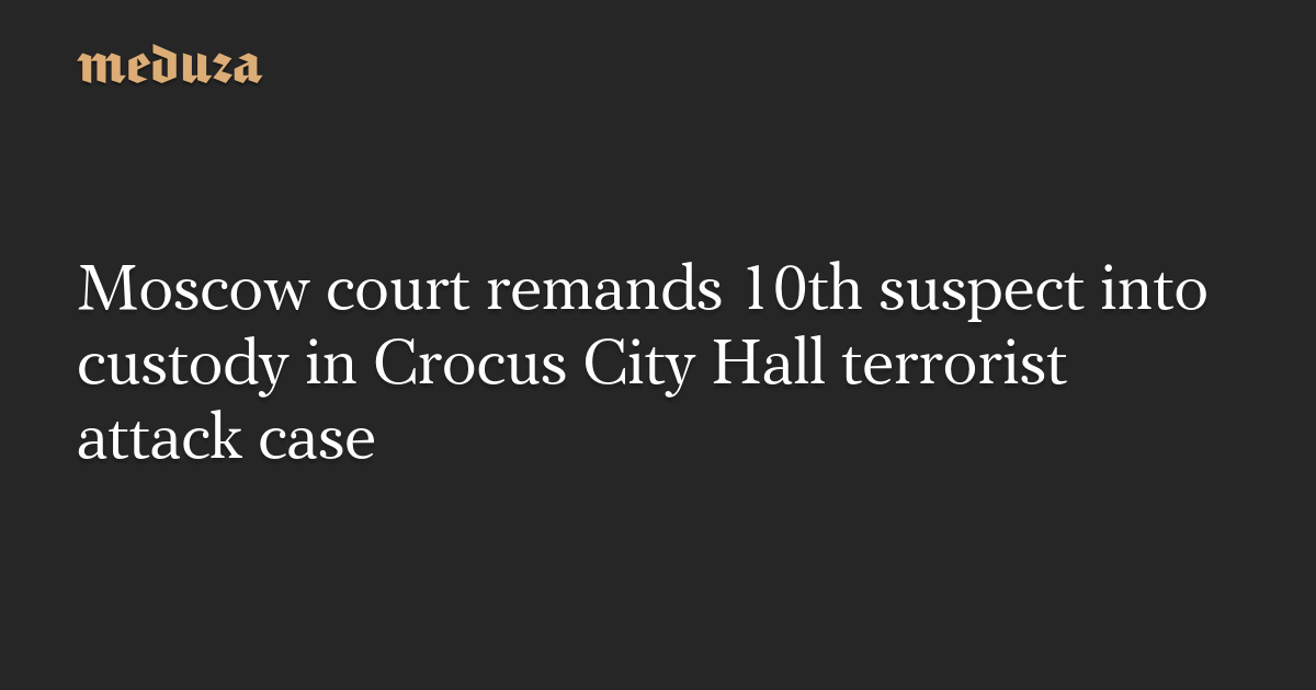 Moscow’s Basmanny Court has remanded a 10th suspect in the Crocus City Hall terrorist attack case, Yakubjon Yusufzoda, into pre-trial detention until May 22. Yusufzoda is a citizen of Tajikistan.