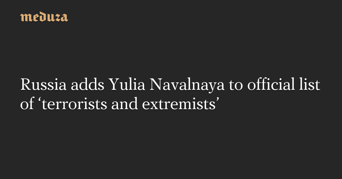 Russia’s Federal Financial Monitoring Service (Rosfinmonitoring) has added Yulia Navalnaya, the widow of Russian opposition leader Alexey Navalny, to its official list of “terrorists and extremists.”
