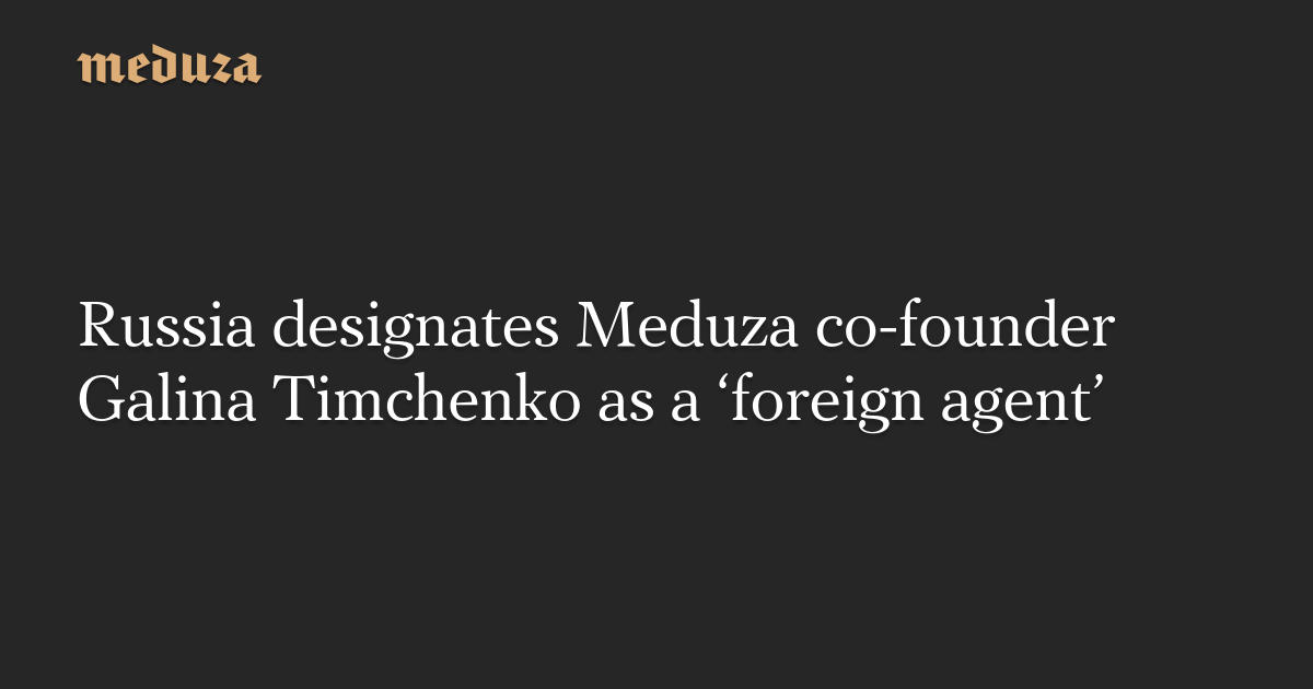 The Russian Justice Ministry has designated Meduza’s co-founder and publisher, Galina Timchenko, as a “foreign agent.”