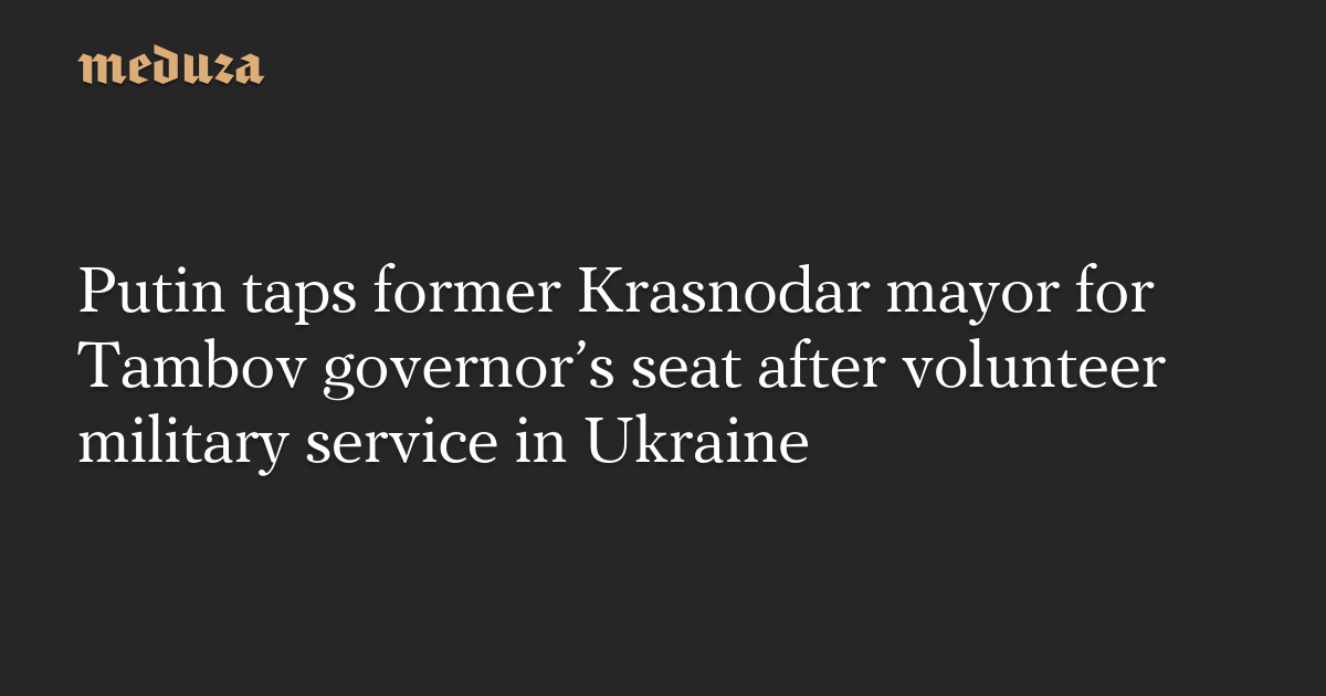 Putin taps former Krasnodar mayor for Tambov governor’s seat after volunteer military service in Ukraine