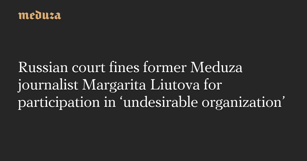 Russian court fines former Meduza journalist Margarita Liutova for participation in ‘undesirable organization’