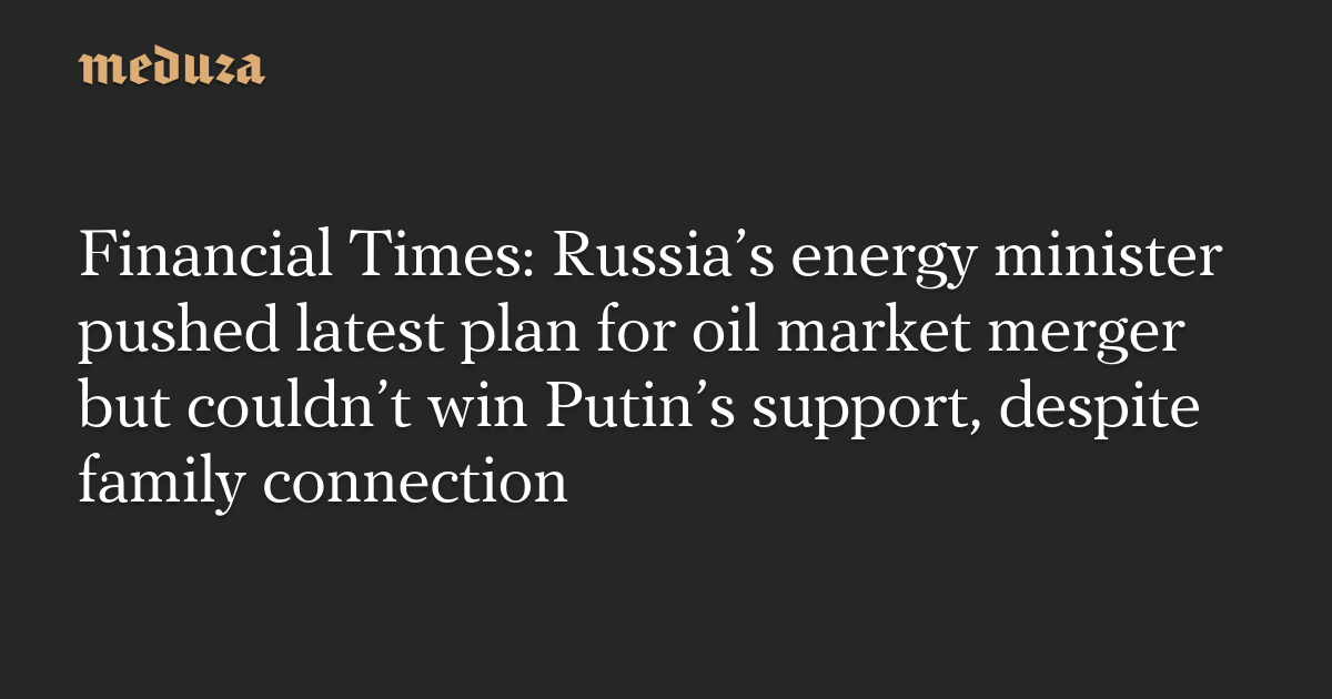 Financial Times: Russia’s energy minister pushed latest plan for oil market merger but couldn’t win Putin’s support, despite family connection