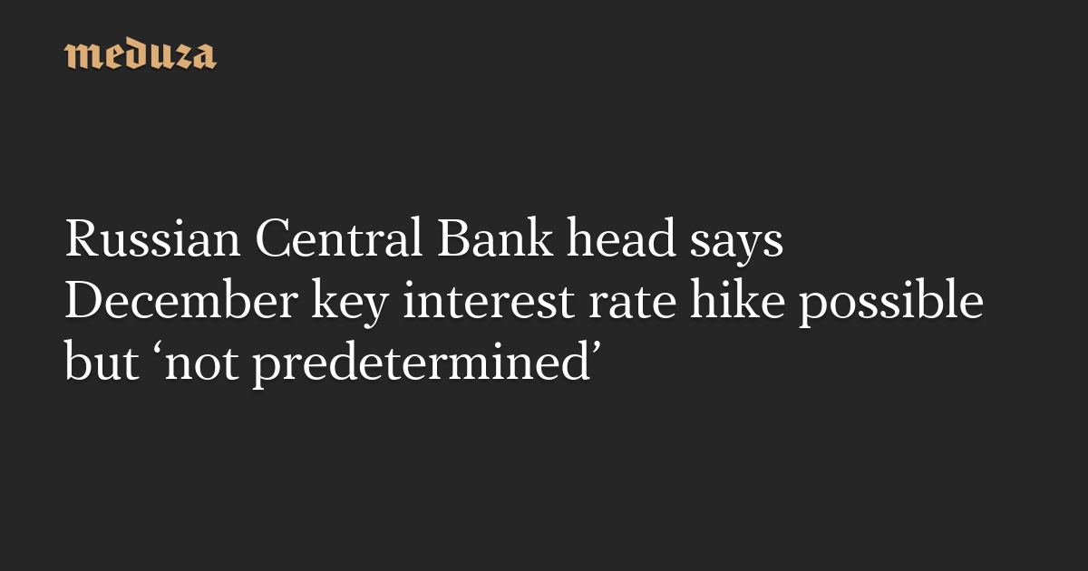 Russian Central Bank head says December key interest rate hike possible but ‘not predetermined’