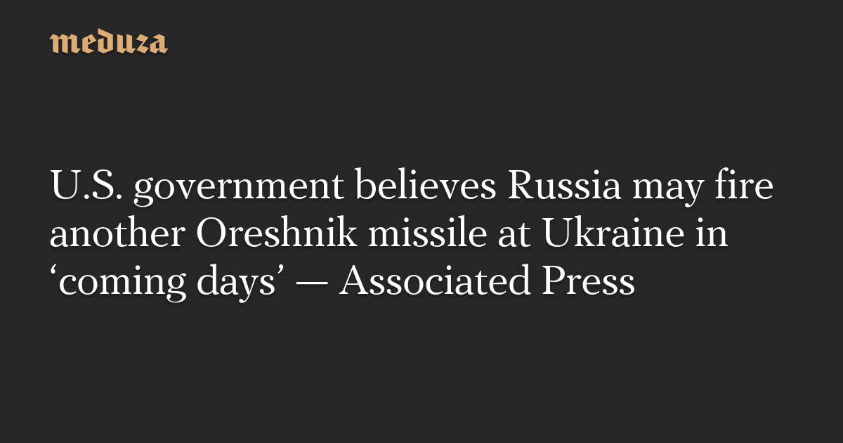 U.S. government believes Russia may fire another Oreshnik missile at Ukraine in ‘coming days’ — Associated Press