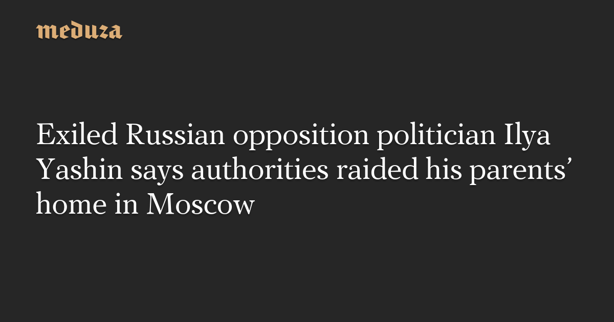 Russian police raided the home of exiled opposition figure Ilya Yashin’s parents in Moscow on Thursday, Yashin reported on Telegram.