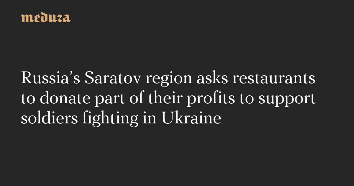 The government of Russia’s Saratov region has sent a letter to local restaurant owners calling on them to make monthly payments to support soldiers fighting in the war in Ukraine, according to the Telegram channel Soykaperesmeshchnitsa.