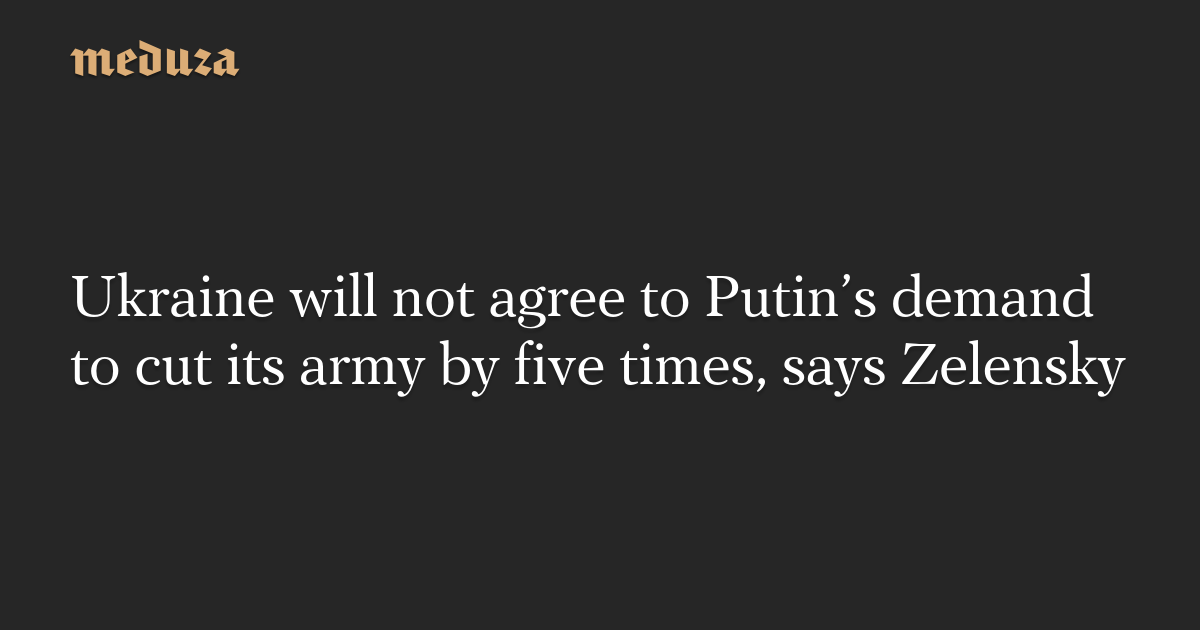 Ukraine will not agree to Putin’s demand to cut its army by five times, says Zelensky