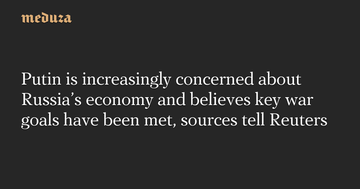 Putin is increasingly concerned about Russia’s economy and believes key war goals have been met, sources tell Reuters
