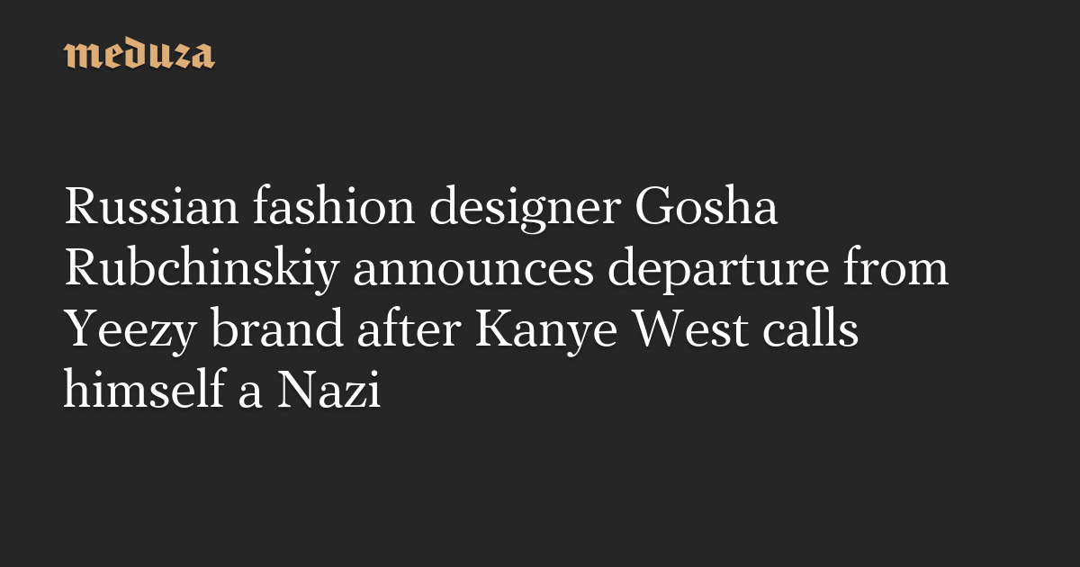 Russian fashion designer Gosha Rubchinskiy has ended his partnership with American rapper Ye (better known as Kanye West), he announced in an Instagram post on Friday. He had been serving as the head of design for Ye’s fashion brand Yeezy.