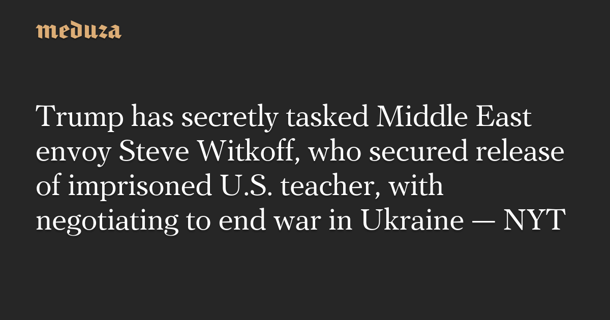 Trump has secretly tasked Middle East envoy Steve Witkoff, who secured release of imprisoned U.S. teacher, with negotiating to end war in Ukraine — NYT