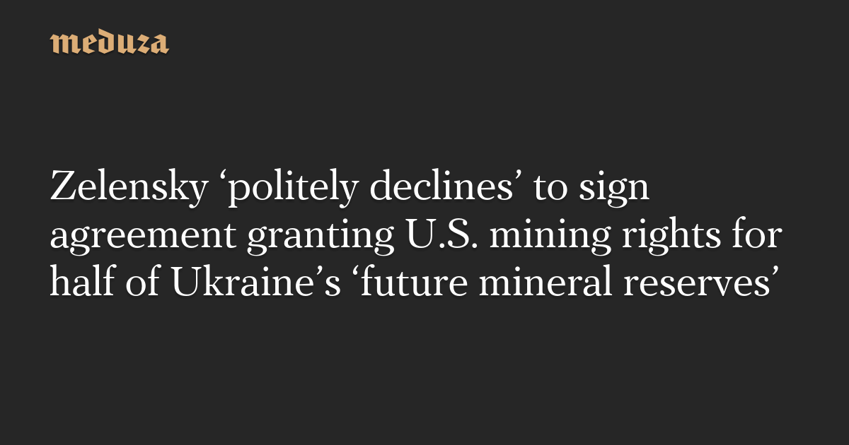 Zelensky ‘politely declines’ to sign agreement granting U.S. mining rights for half of Ukraine’s ‘future mineral reserves’