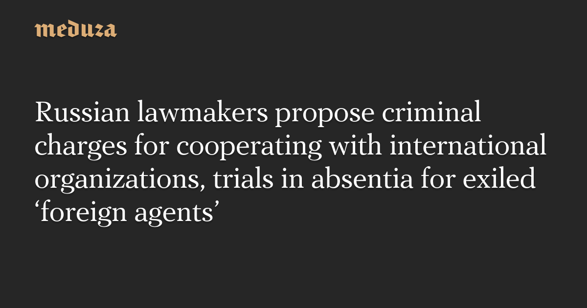 Russian lawmakers propose criminal charges for cooperating with international organizations, trials in absentia for exiled ‘foreign agents’