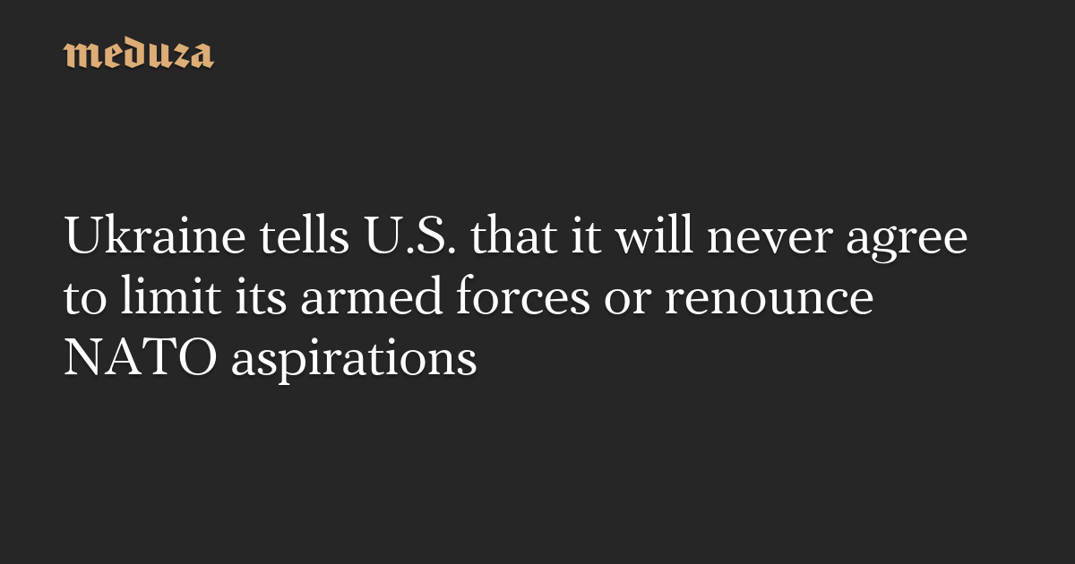Ukrainian diplomats told U.S. that Kyiv will never agree to limit size of its armed forces or renounce NATO aspirations — European Pravda