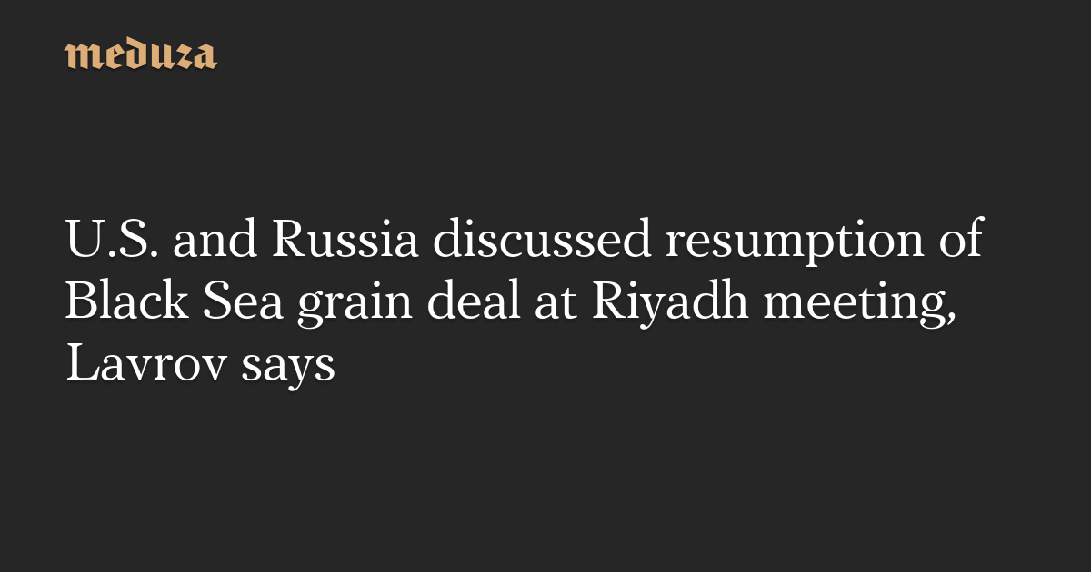 U.S. and Russian delegations discussed the possible resumption of the Black Sea grain deal during their 12-hour meeting in Riyadh on Monday, Russian Foreign Minister Sergey Lavrov told state media.