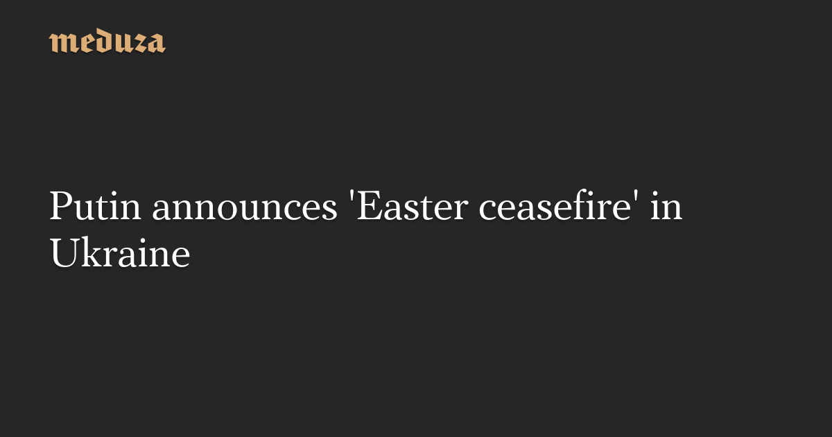Vladimir Putin has ordered the Russian military to stop all fighting “from 6:00 p.m. on April 19 until 12:00 a.m. on April 21,” according to the Kremlin’s press service.