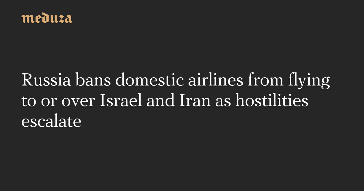 Russia bans domestic airlines from flying to or over Israel and Iran as hostilities escalate