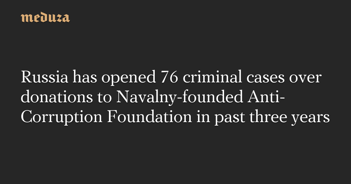 Since Russia designated the Anti-Corruption Foundation (FBK) an “extremist organization,” investigators have opened at least 76 criminal cases over donations to the group, according to a new investigation by Mediazona.