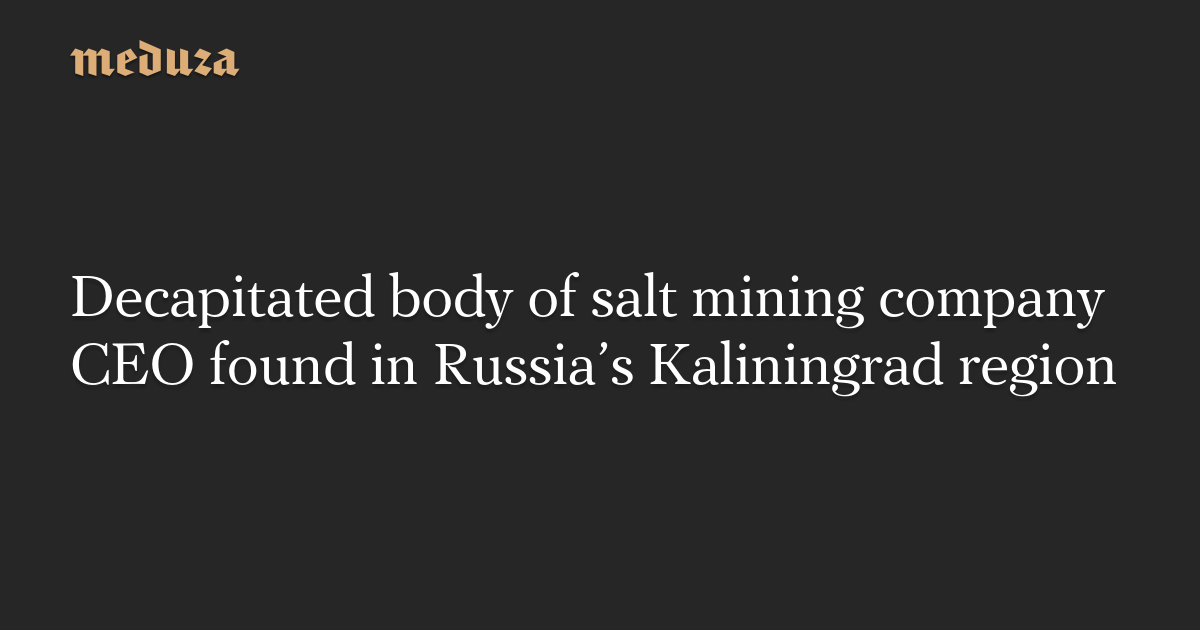 The decapitated body of a salt mining company CEO has been found under a bridge in Russia’s far-western Kaliningrad exclave, state media reports.