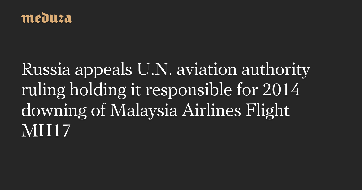 Russia appeals U.N. aviation authority ruling holding it responsible for 2014 downing of Malaysia Airlines Flight MH17