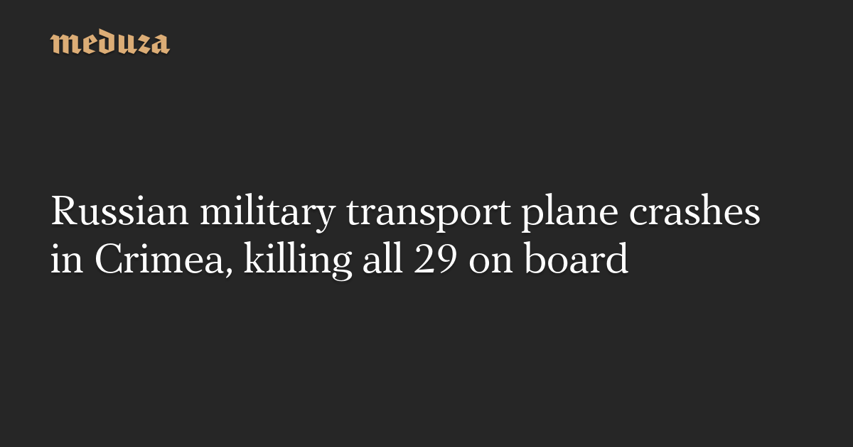 A Russian military transport plane crashed in Crimea on Tuesday, killing all 29 people on board, Russia’s Defense Ministry said. The An-26 was carrying six crew members and 23 passengers.