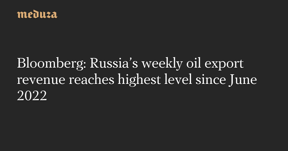 Bloomberg: Russia’s weekly oil export revenue reaches highest level since June 2022
