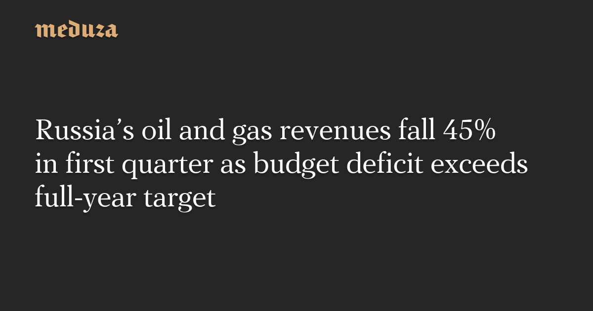 Russia’s oil and gas revenues fall 45% in first quarter as budget deficit exceeds full-year target