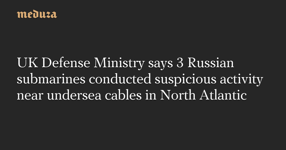 UK Defense Ministry says 3 Russian submarines conducted suspicious activity near undersea cables in North Atlantic