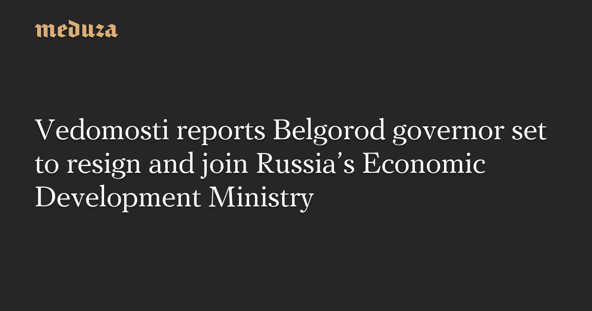 Vedomosti reports Belgorod governor set to resign and join Russia’s Economic Development Ministry