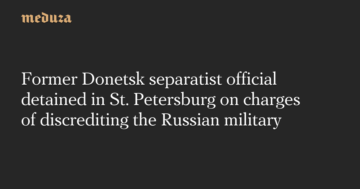 Former Donetsk separatist official detained in St. Petersburg on charges of discrediting the Russian military