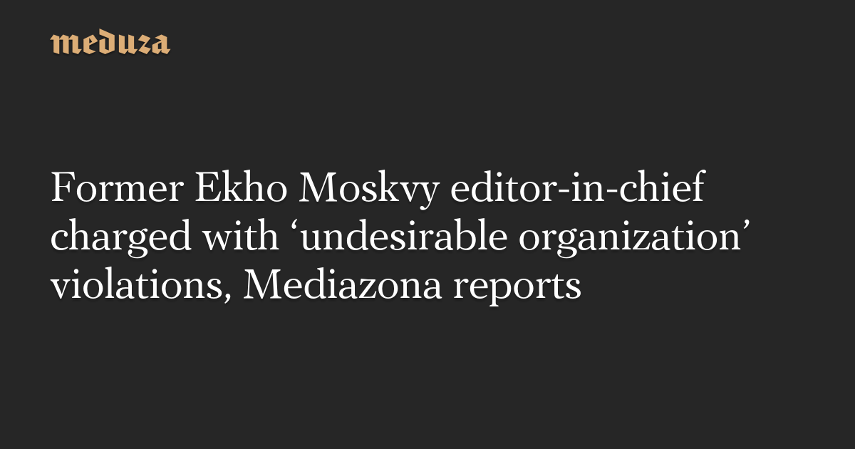 Former Ekho Moskvy editor-in-chief charged with ‘undesirable organization’ violations, Mediazona reports