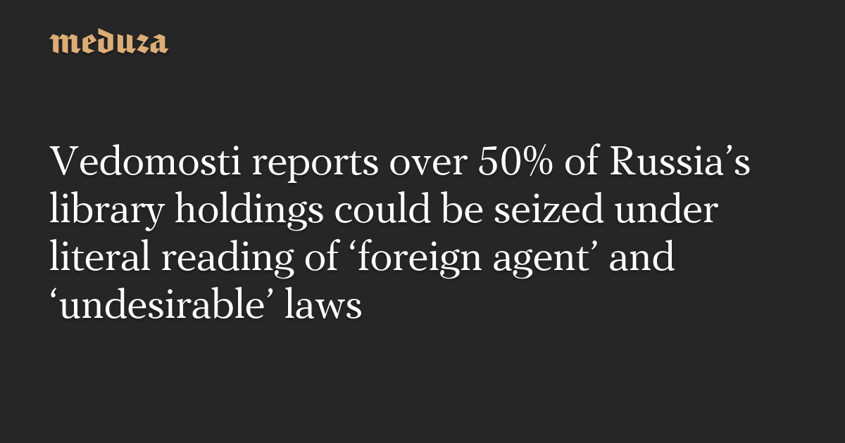 Vedomosti reports over 50% of Russia’s library holdings could be seized under literal reading of ‘foreign agent’ and ‘undesirable’ laws