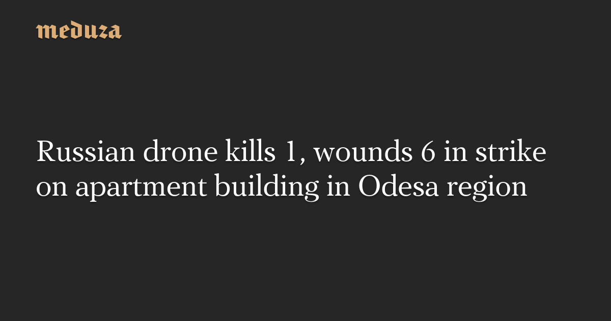 A Russian drone struck a nine-story apartment building in the Odesa region on April 15, killing one person and wounding six others, Oleh Kiper, the head of the Odesa regional military administration, said.