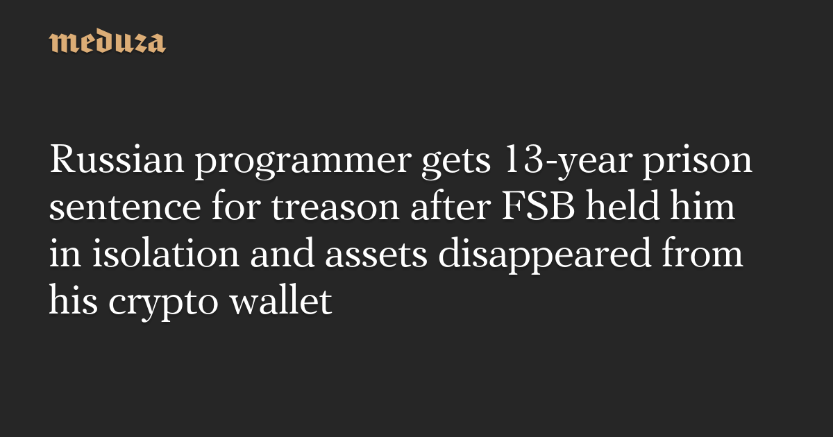 Russian programmer gets 13-year prison sentence for treason after FSB held him in isolation and assets disappeared from his crypto wallet