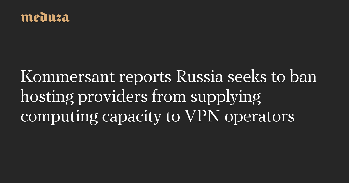 Kommersant reports Russia seeks to ban hosting providers from supplying computing capacity to VPN operators