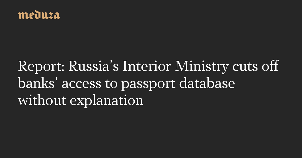 Report: Russia’s Interior Ministry cuts off banks’ access to passport database without explanation