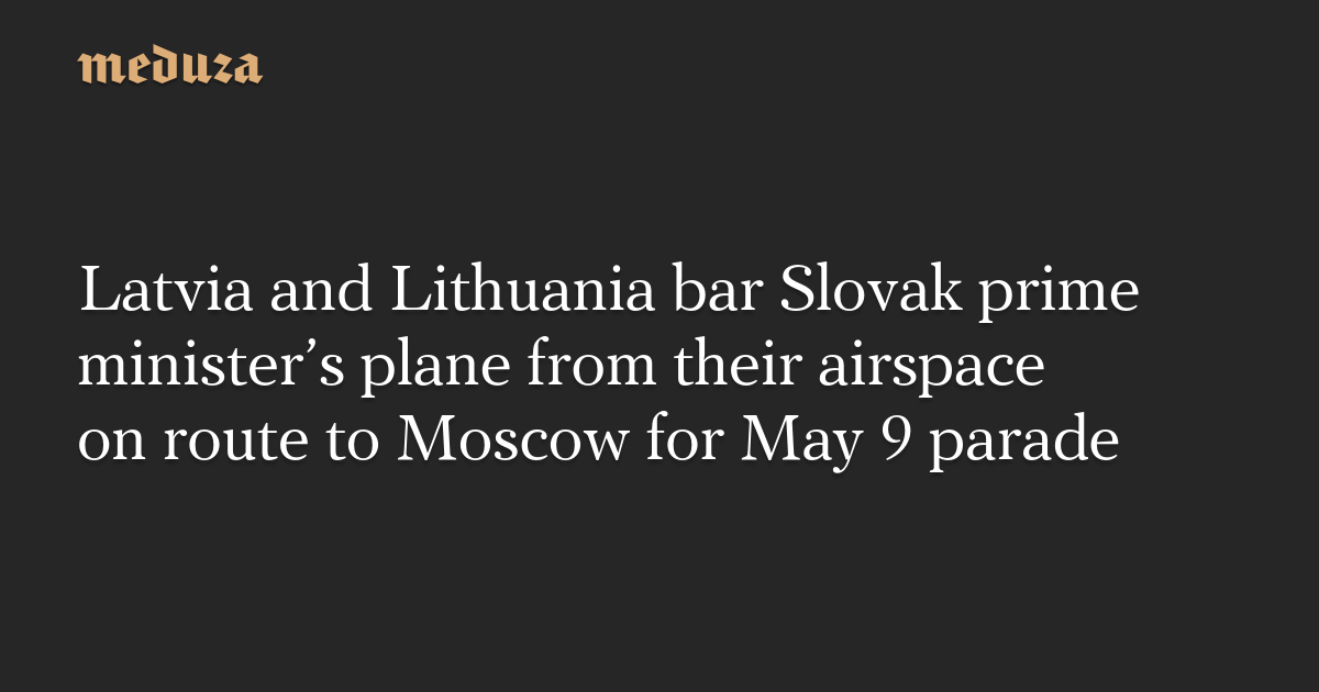 Slovak Prime Minister Robert Fico said Latvia and Lithuania will not allow his plane to use their airspace for a flight to Moscow to attend the Victory Day military parade on May 9.