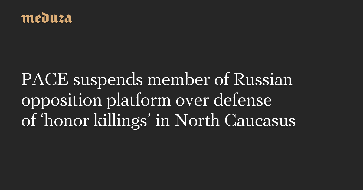 PACE suspends member of Russian opposition platform over defense of ‘honor killings’ in North Caucasus