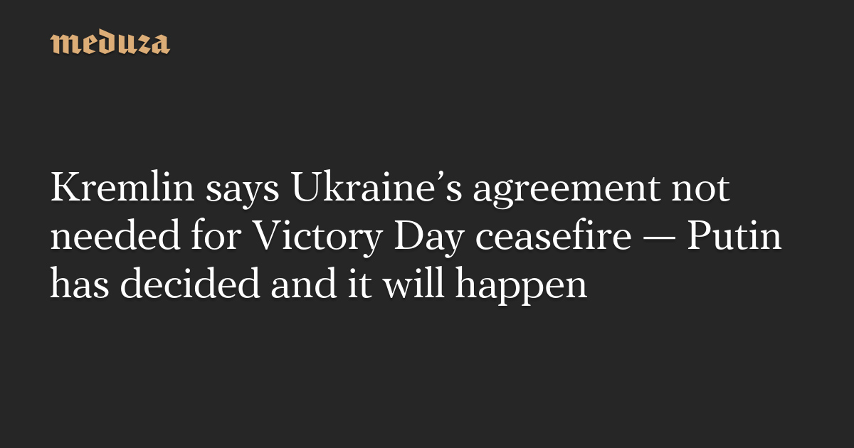Kremlin says Ukraine’s agreement not needed for Victory Day ceasefire — Putin has decided and it will happen