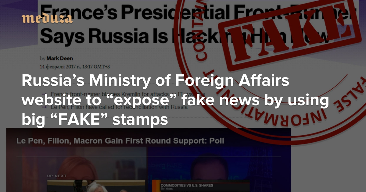 Russia’s Ministry of Foreign Affairs website to “expose” fake news by using big “FAKE” stamps