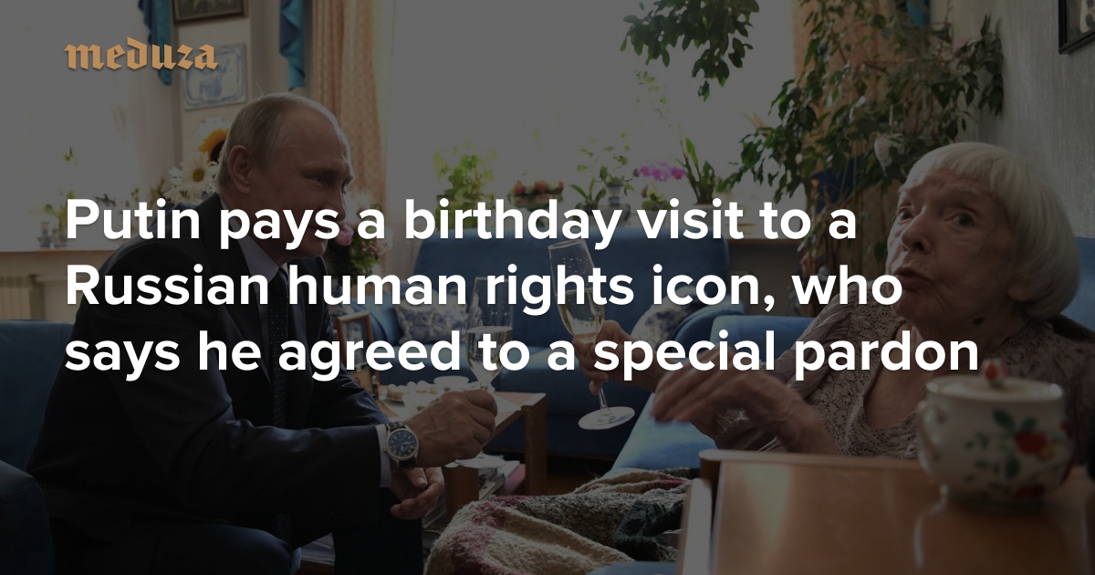This Thursday, Vladimir Putin stopped by the home of Lyudmila Alexeyeva, an icon of Russia’s human rights movement, to wish the 90-year-old woman a happy birthday. It wasn’t all light banter and champagne, however. Alexeyeva says she convinced the president to pardon Igor Izmestiev, a former Russian senator and entrepreneur convicted in 2010 of organizing multiple homicides.