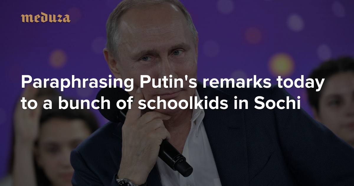 On July 21, Vladimir Putin met with a studio audience packed with youngsters from Sochi’s “Sirius School for the Gifted.” In a televised event, the president fielded a lot of very different questions, sharing personal thoughts about everything from nicknames to the formation of our solar system. Summarizing Putin’s remarks, Meduza paraphrases the president’s Friday performance in Sochi.