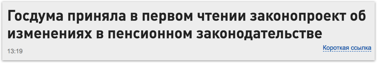 NTV: After first reporting “Legislation to raise the retirement age is adopted in its first reading,” the outlet immediately changed the headline to read: “Legislation reforming pension legislation is adopted in its first reading” 😂