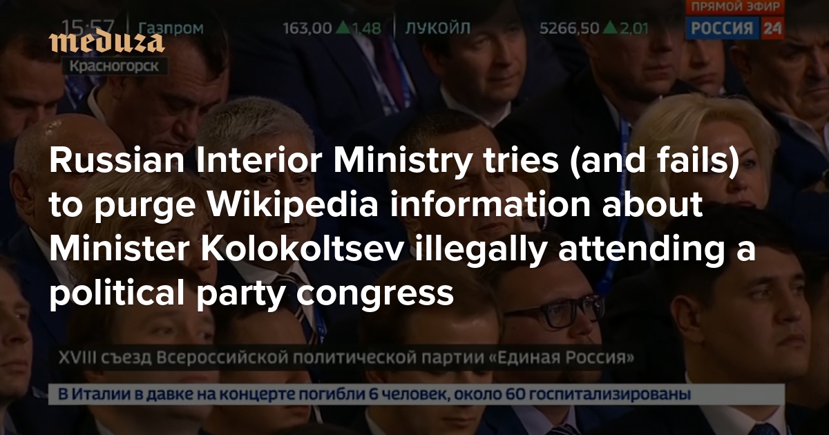 Russian Interior Ministry tries (and fails) to purge Wikipedia information about Minister Kolokoltsev illegally attending a political party congress