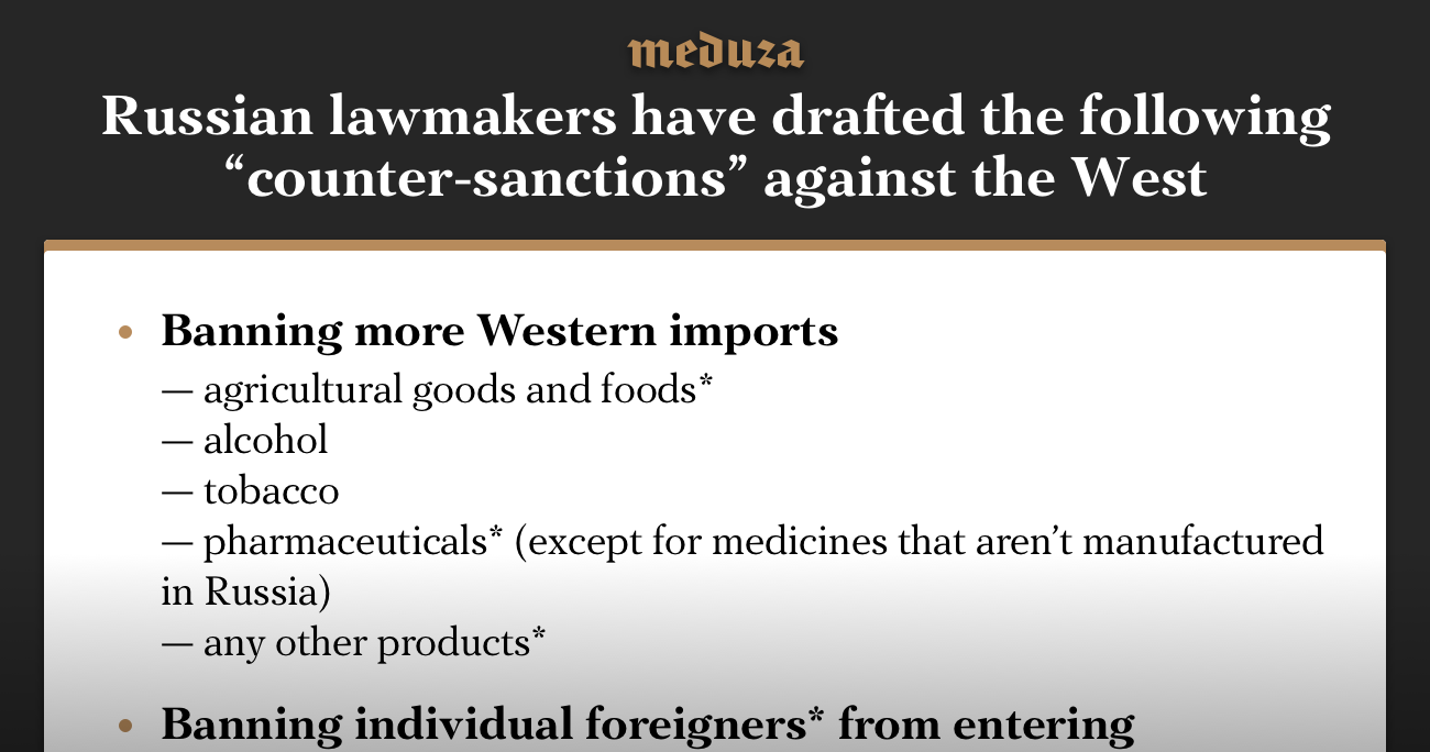 Russian lawmakers have drafted a whole list of possible ‘counter-sanctions’ against the U.S., and whoa